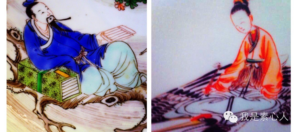 这件瓷器从工艺上讲也是五彩,与前面讲到的西王母驾鹤图一样,同样都是康熙朝产出。西王母居住在天上的瑶池,雍容祥和,驾鹤来去,这位仙士驾槎赶去银河。单从图像上看,西王母驾鹤,仙人乘槎,方向刚好是面对面。友人说这像不像我们?遂决定用仙人乘槎当作他的头像。(图四)