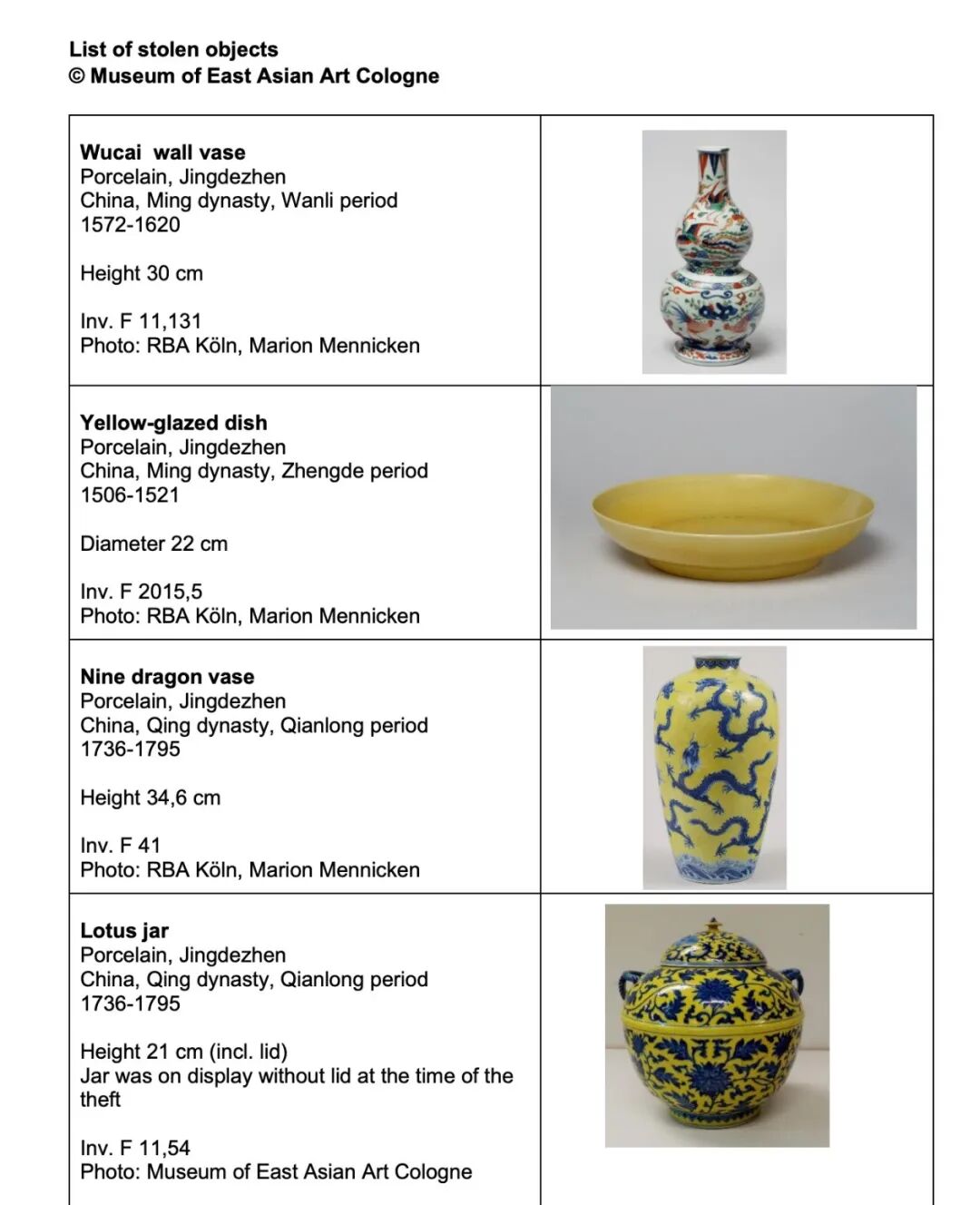 被盗数量:9件,明清御窑瓷器,总价值超过一千三百万欧元