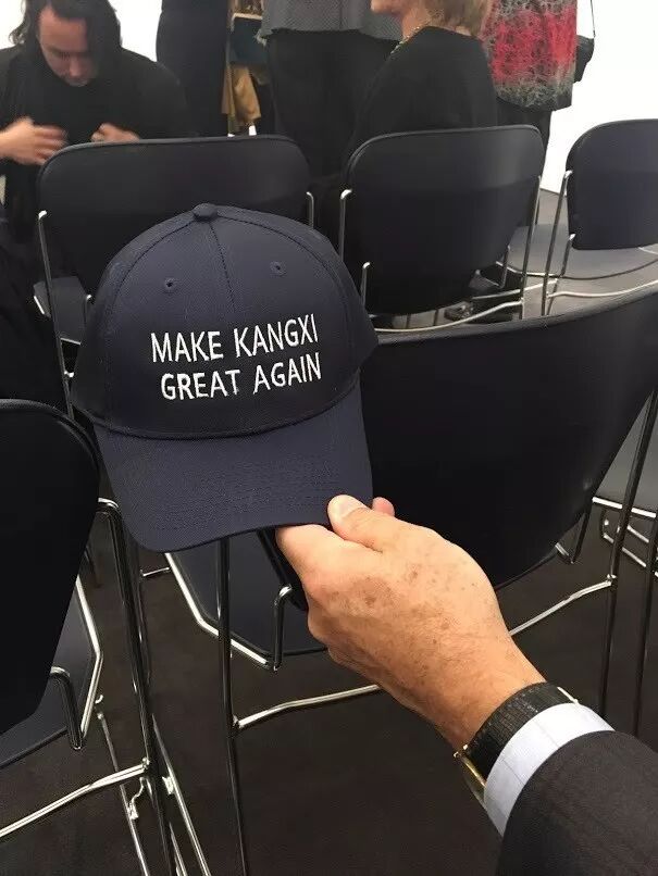 苏富比讲座现场,有位老先生戴了一顶帽子,上书:Make Kangxi Great Again,实在是抢镜,得多爱康熙才能如此幼稚却又可爱的向世人表明心意。讲座后前去询问,哪里可以买到,才得知是洁蕊堂找人定制的,总共两顶,试戴了一下,得瑟的拍了照,发到了ins上,后来去marchant看展的时候,marchant女儿Natalie说,她还截图给她爸看,大家实在很爱,纷纷要求联系洁蕊堂。