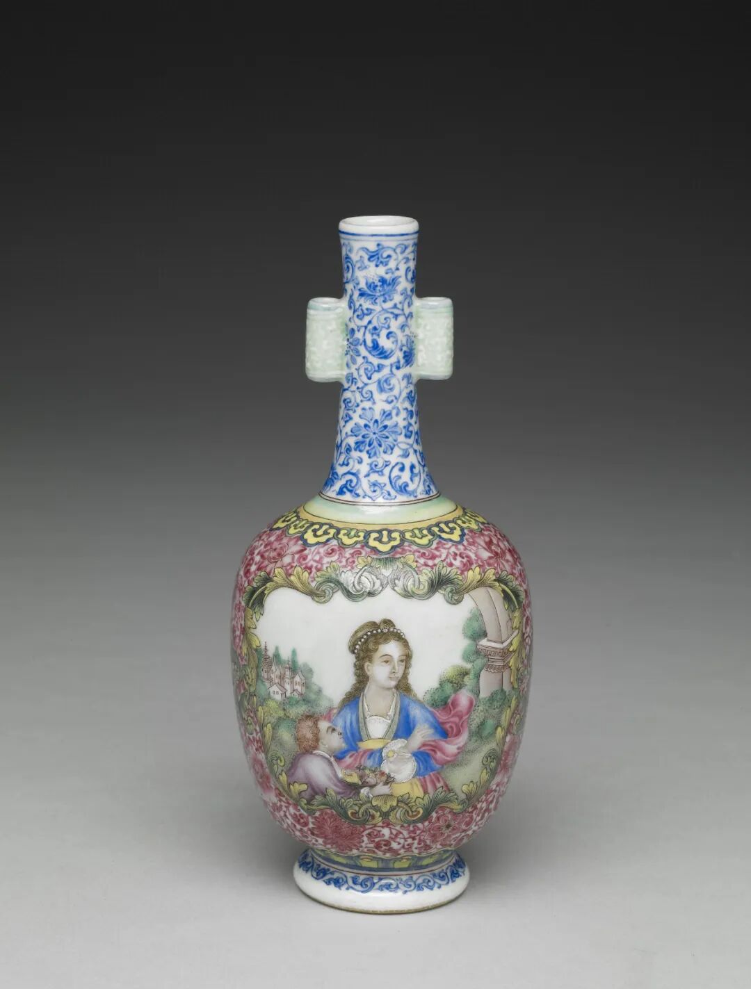 清 乾隆 琺瑯彩錦地開光西洋人物貫耳瓶 台北故宫藏品