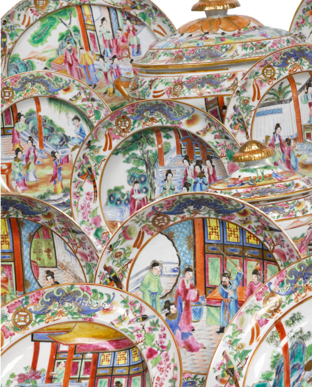 清道光 約1825至30年 廣彩人物圖餐具一組