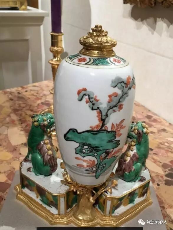 这个物件也很有意思,康熙的瓷器被法国人改装成了香水瓶,前面有个小小的水龙头,理论上说,一拧就会有香水出来。