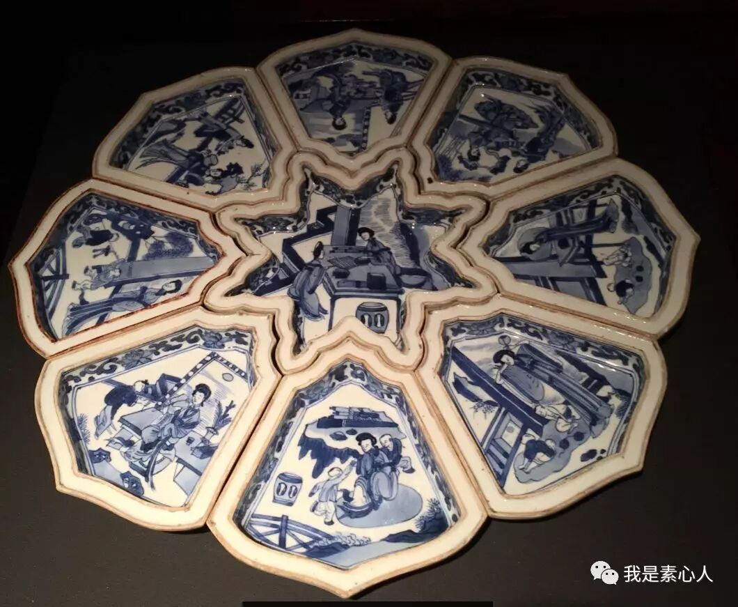 Vanderven藏品,康熙外销瓷,每个盘中间画着女人的各种活动,很是可爱。
