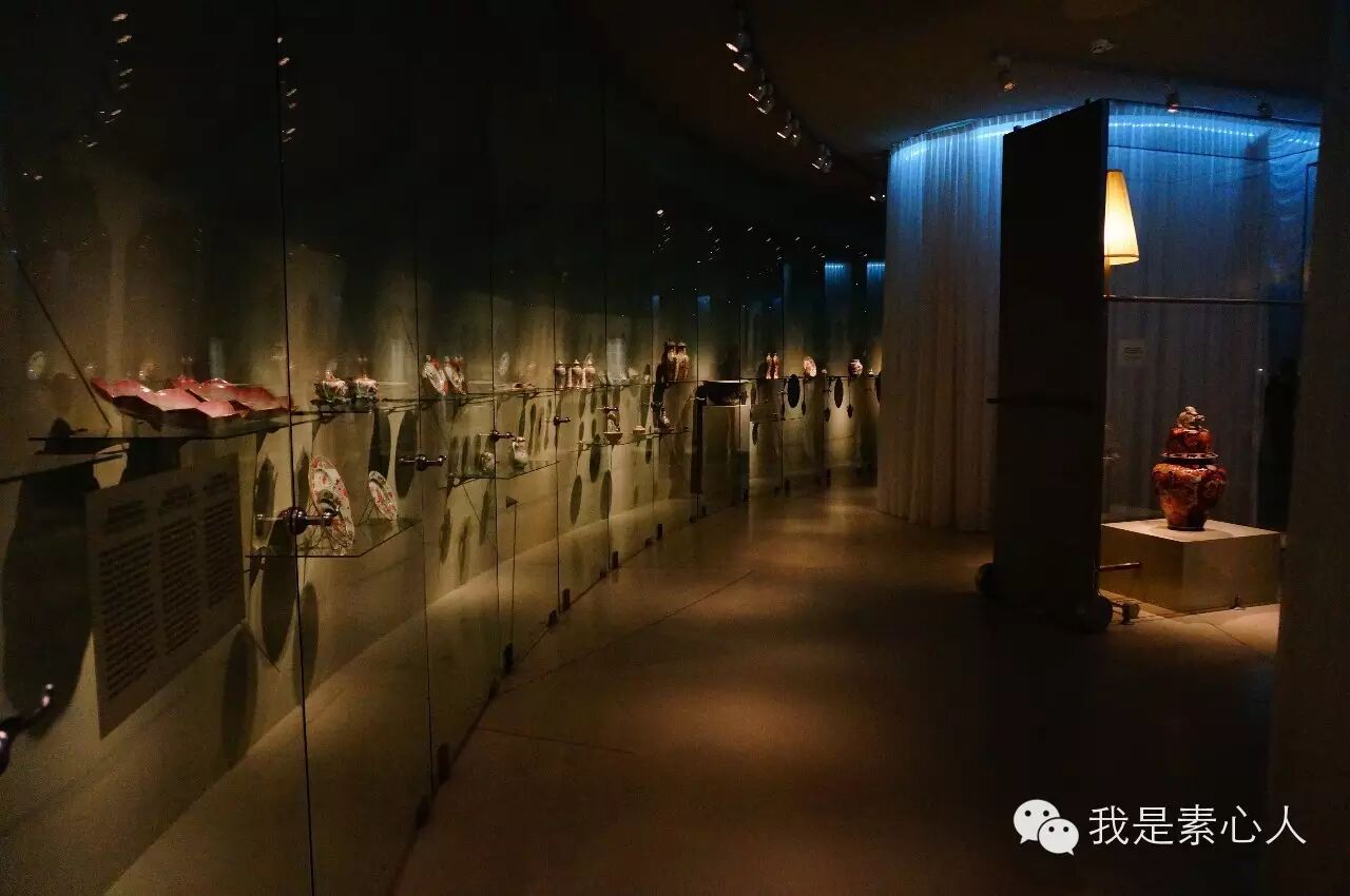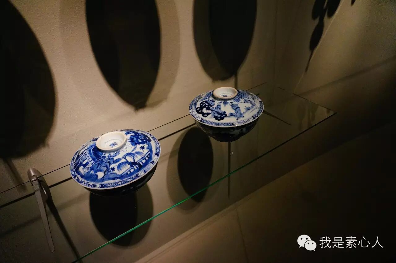 飘逸的白纱里隐隐约约透着瓷器发来的光。有小孩子的话,很适合捉迷藏。而传说中的精挑细选的300件瓷器分几批被归置在不同的白纱区域里。日本的伊万里,中国的青花,五彩,和粉彩,宜兴茶壶,基本上集中在明晚期到清中晚期。除了白纱带来的震撼之外,展览分成的几大区域只有基本简介,何为青花,何为五彩,只有个别展品拥有珍贵的标签,简单介绍了年份和大小。