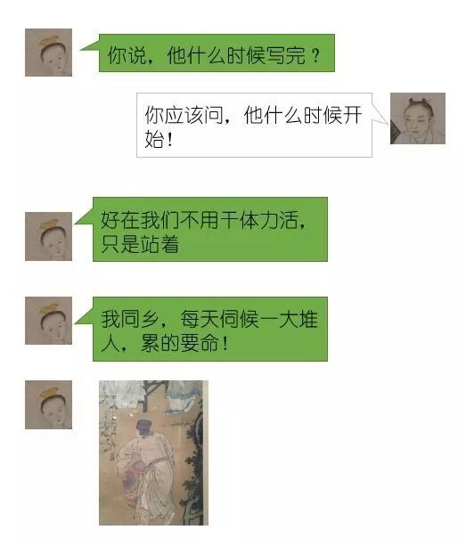 让我发笑的是图中的两个侍童,表情是有多无奈!