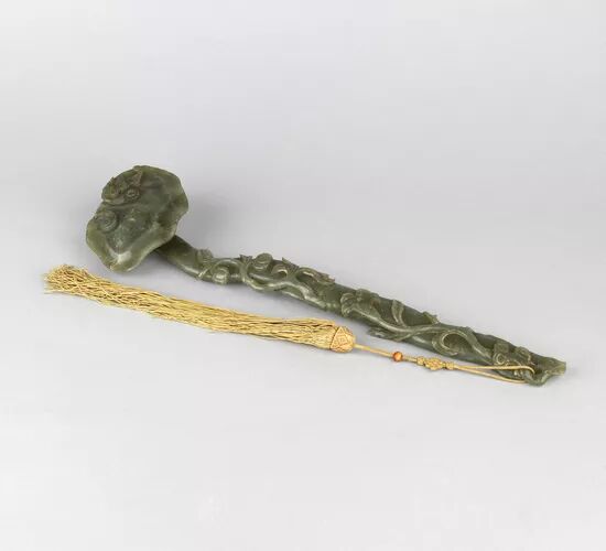 英国皇室收藏中,也有一件类似玉如意,学者推测,也许就是当时乾隆赏赐马尔嘎尼的碧玉如意。(John Ayers,Chinese and Japanese Works of Art in the Collection of Her Majesty The Queen: Volume III.)