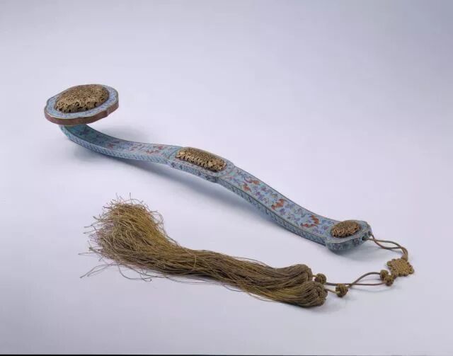 而真正让如意变成吉祥纹饰、吉祥器物代表则是在清代,尤其是乾隆的助攻,使如意发展达到了顶峰。宫里每逢喜庆年节,皇帝皇后太后寿诞,臣子们都要进献如意以表祝福,八方朝拜,如意为先。慈禧六十大寿时,有贡品如意9盒,每盒9柄,取‘九九如意’之意。