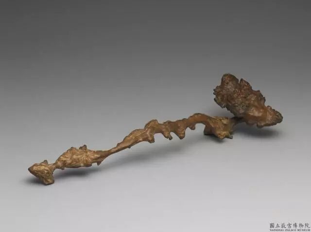 上图人物手持如意,跟这柄如意似乎如出一辙。如意曲柄翘首,呈天然灵芝状,颇具雅趣。