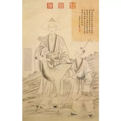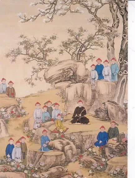 《少年弘历采芝图》,故宫博物院藏。图中弘历着汉族衣衫,手持芝形如意,神态安详,举止闲雅。