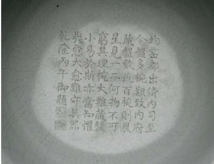 乾隆本人是一位爱好题字盖章、热情洋溢的收藏家,但他却误将此碗当成了钧窑瓷,并将错误的信息题在了这枚瓷碗的碗底,使得这枚瓷碗更加与众不同。乾隆的诗也说明了这枚瓷碗的珍贵性:尽管内府收藏瓷盘甚多,但瓷碗却相对罕见,这是因为立体的瓷碗相较于瓷盘更难保存。
