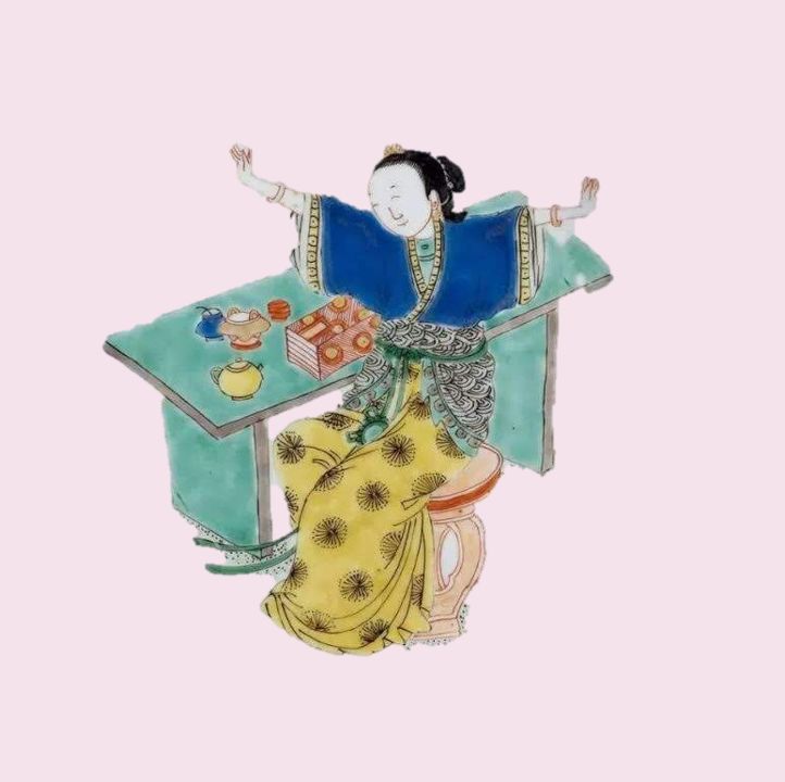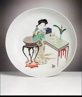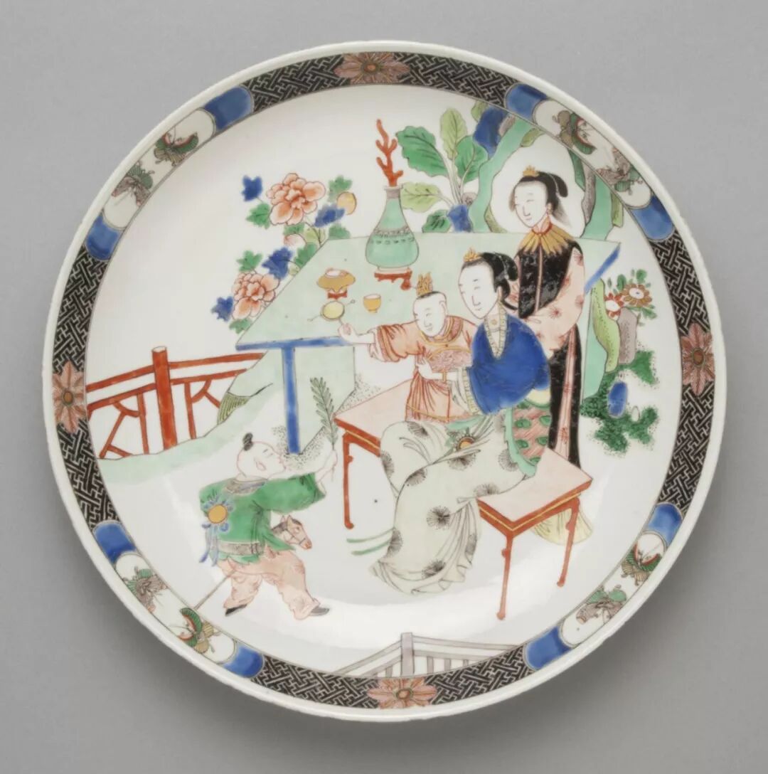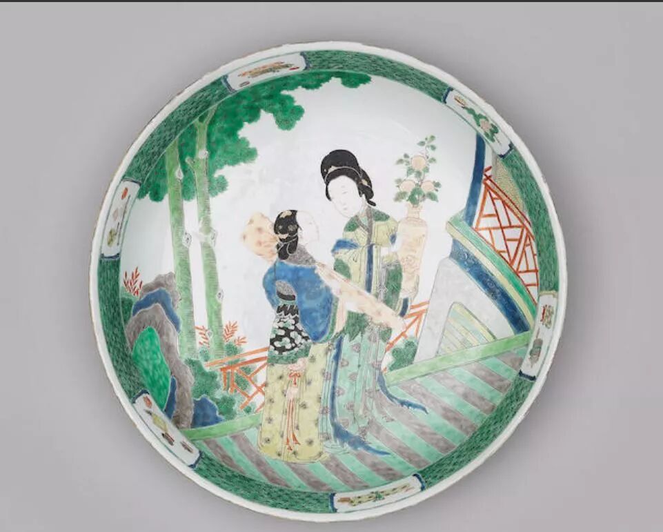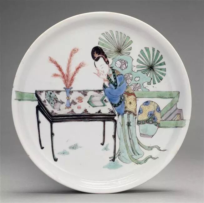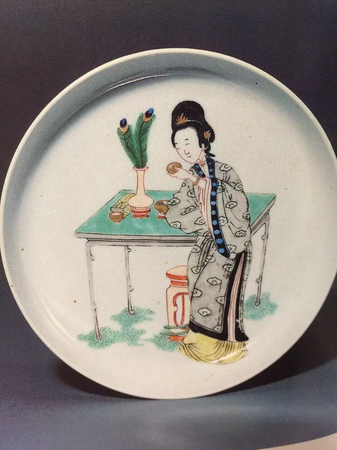 此处吐槽故宫的线上数据库,瓷器,盘碗,很多只上传了侧面照,至于碗盘中间的画片,只能隐隐看到一个小角落,比如下面这几张,虽然没看清,但是也侧面证实了,她们的确是左脸朝向‘镜头’。