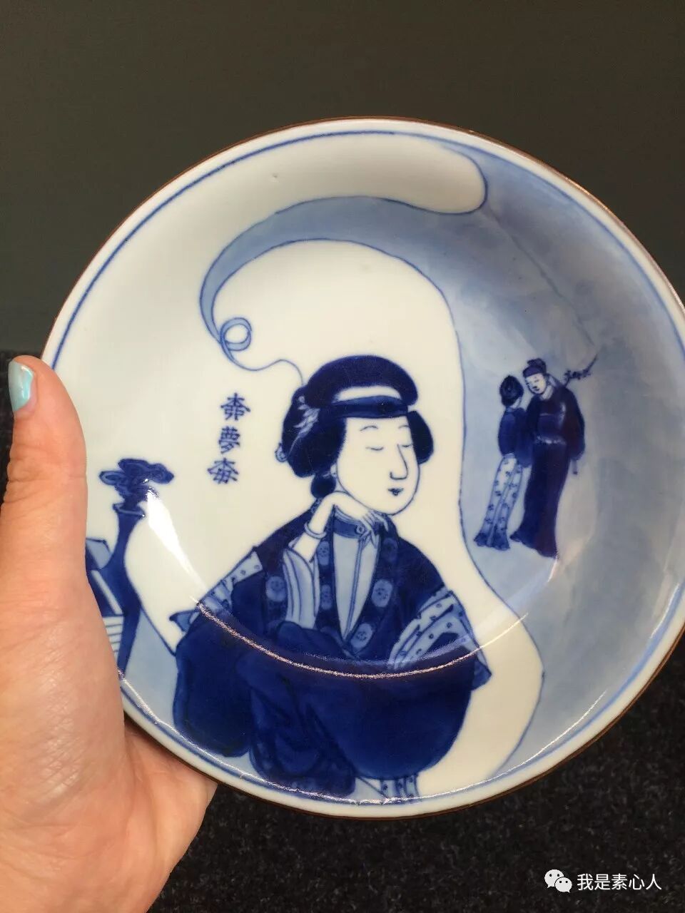 据我的不完全统计,康熙大头女的瓷器,还是以左脸居多。当然也有很多右脸画片, 比如下面几张惊为天人的可爱大头女: