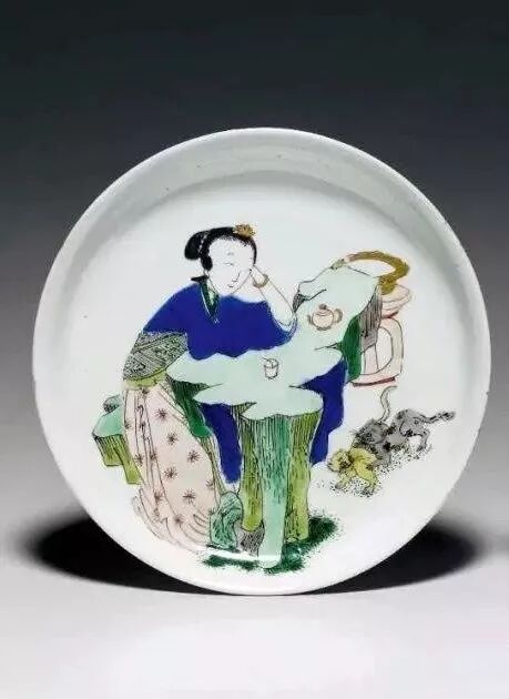 清康熙 五彩仕女图盘,大英博物馆藏。