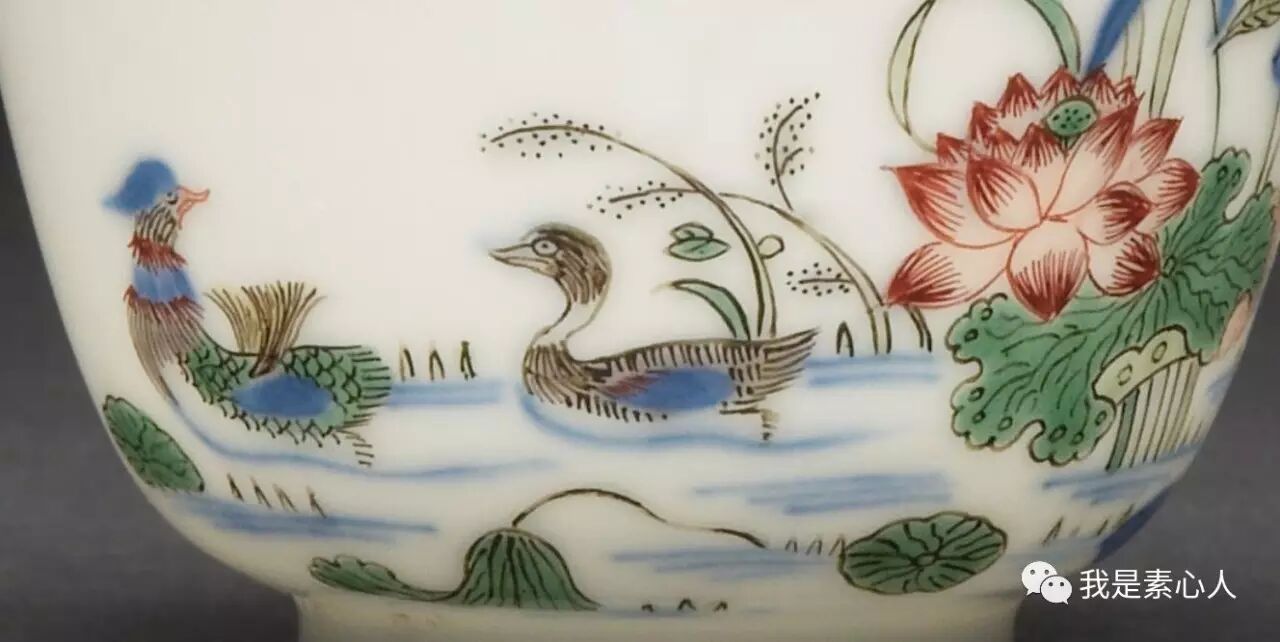 大维德藏品,六月荷花杯,两只鸳鸯,呆萌互望。