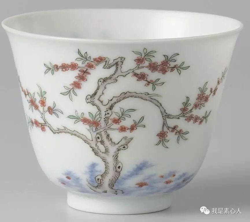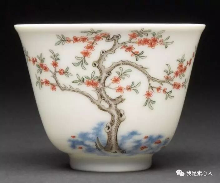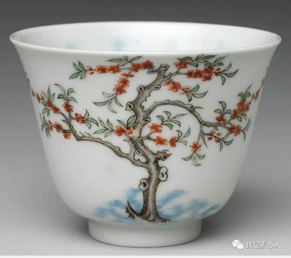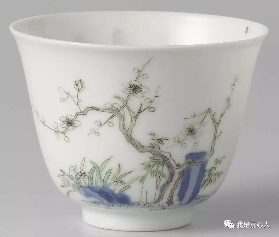 荷兰国立博物馆藏品,梅花杯,细看,除了枯皱的老树枝,还有新长出的嫩枝,淡墨与浅绿,新旧的交替,预示着万象更新。