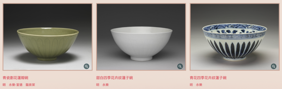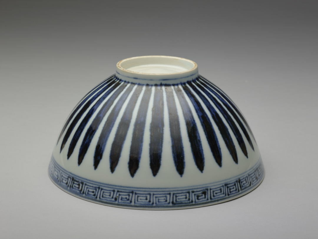 永乐时期的青花莲子碗外壁的一圈莲瓣纹似乎是这种几何条纹的变种,与中国本土的莲瓣纹结合,成为永乐宣德时期盛行的一种官窑茶具器型。