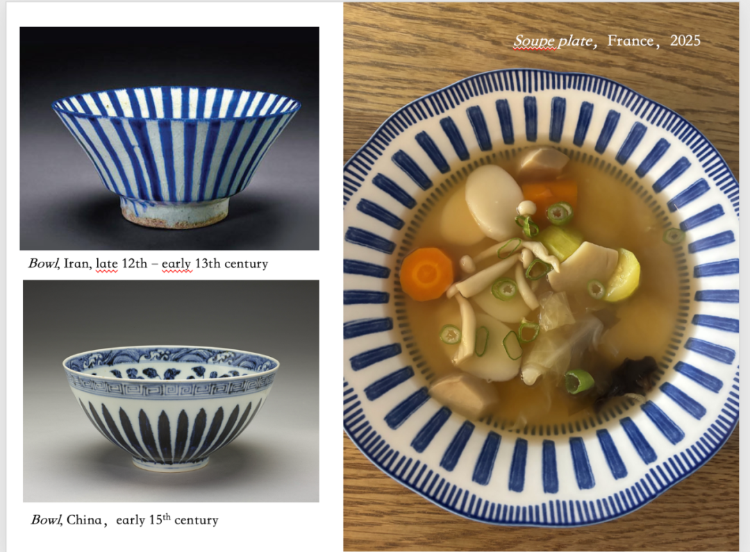 法国的这组盘子设计,隐隐带着古伊朗和明代永乐青花的影子——线条的流动感、装饰的留白、都让我有种似曾相识的熟悉。