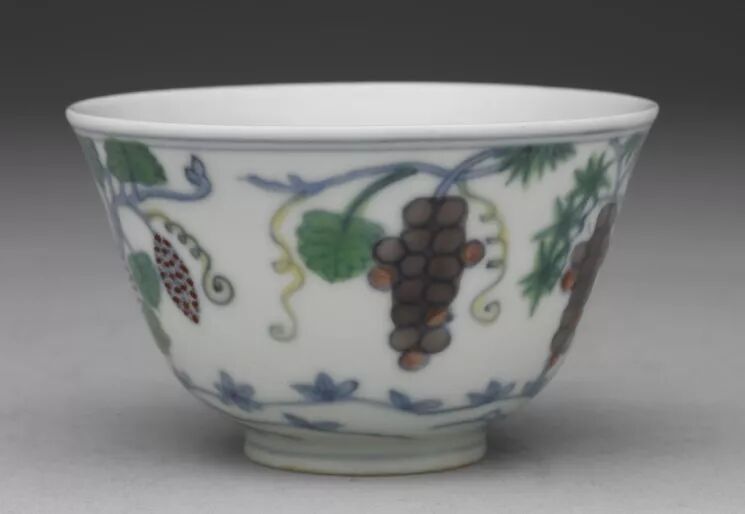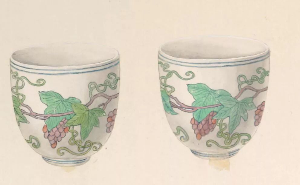 成化瓷器的粉丝之一,雍正皇帝也是葡萄纹杯的拥护者,在他的古玩图上,有两件葡萄纹杯。