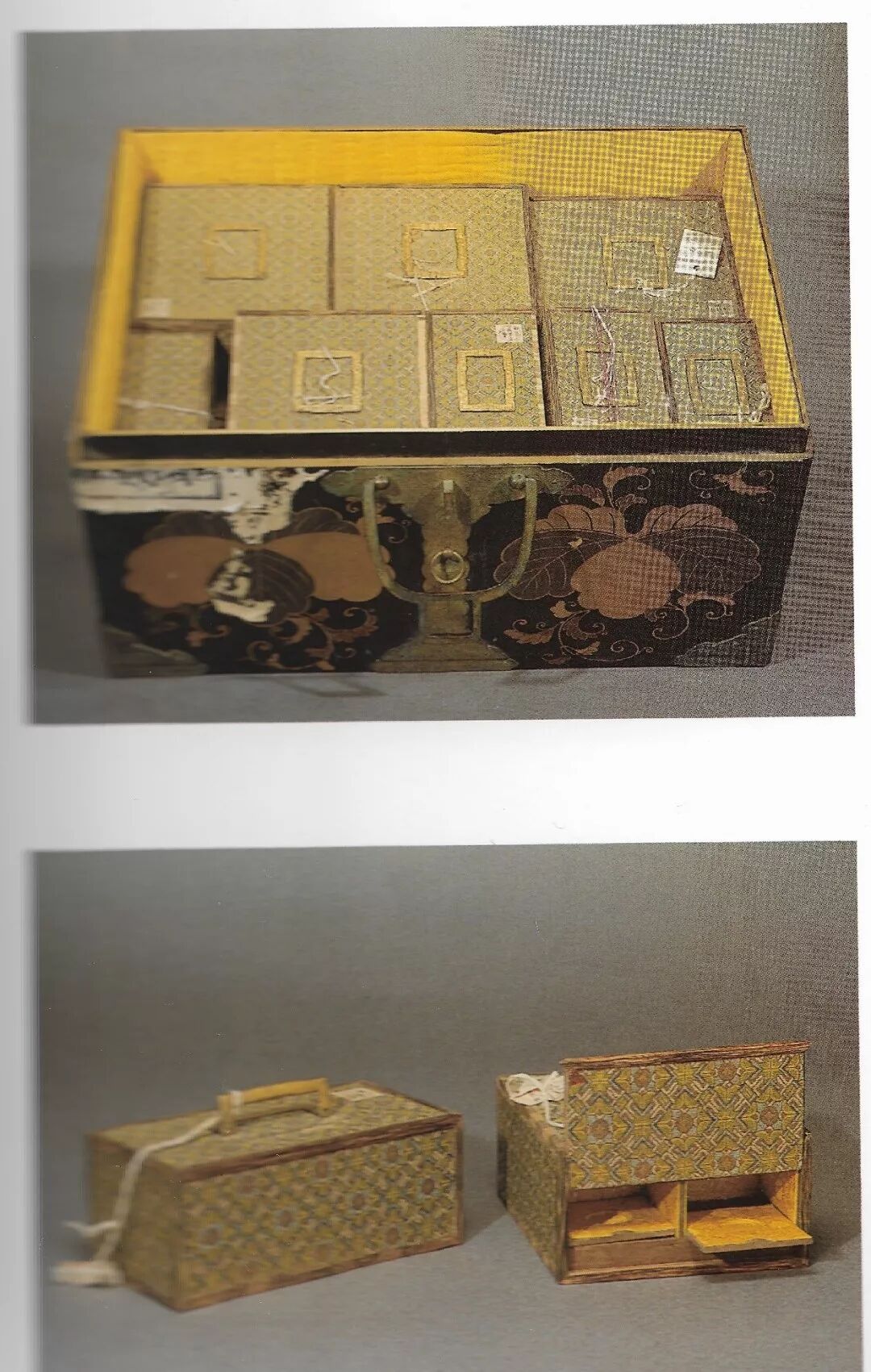 装67件成化窑小杯日本漆箱以及乾隆时期锦盒