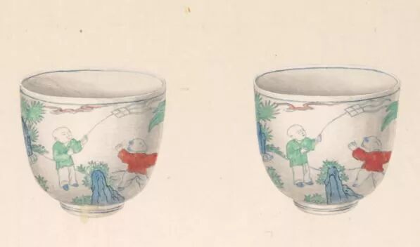 雍正《古玩图》细节里的斗彩婴戏杯,英国大维德基金会藏。