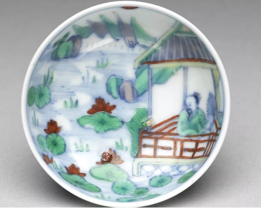周敦頤爱莲斗彩小碟,台北故宮藏。