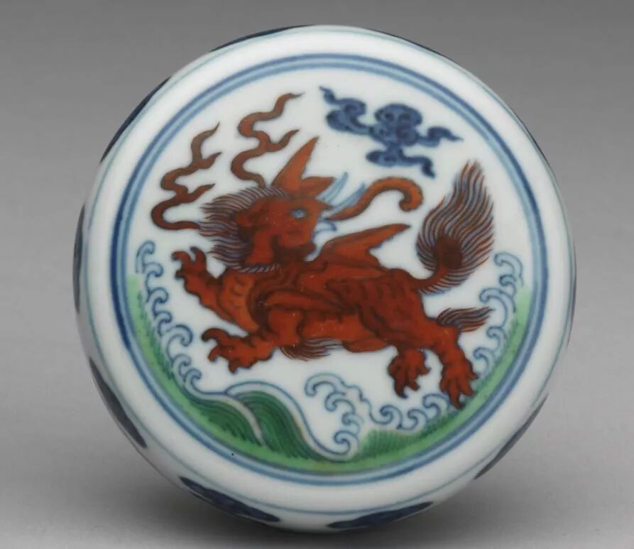 明 成化 「天」字款 青花斗彩夔龙盖罐
