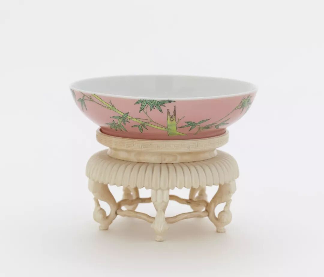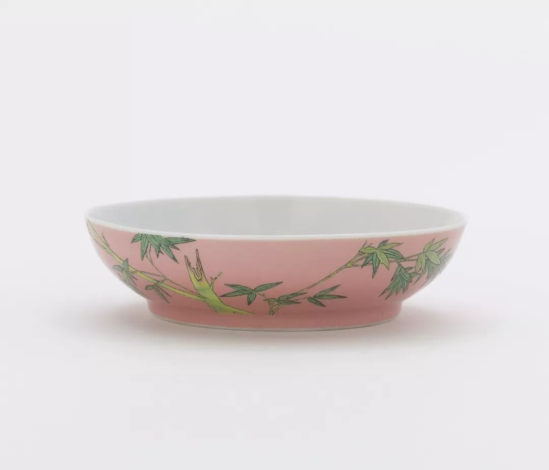 上图中的雍正粉地珐琅彩配上青竹,