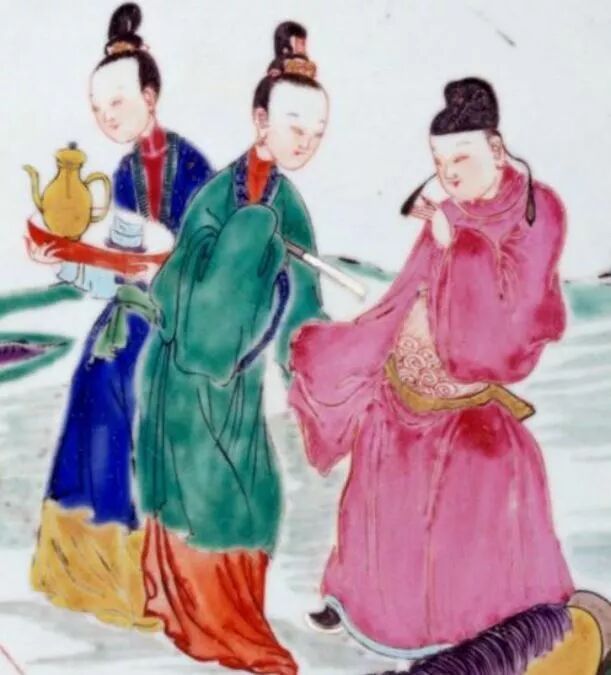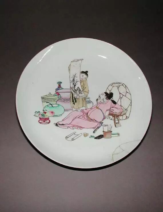 雍正粉彩人物图盘,故宫藏品。