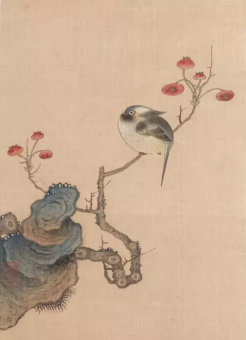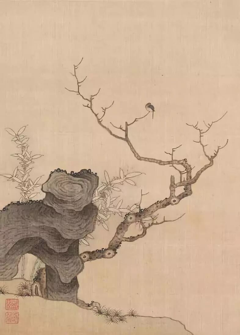 陈洪绶《山水花鸟册页》局部,BAMPFA藏,高居翰旧藏