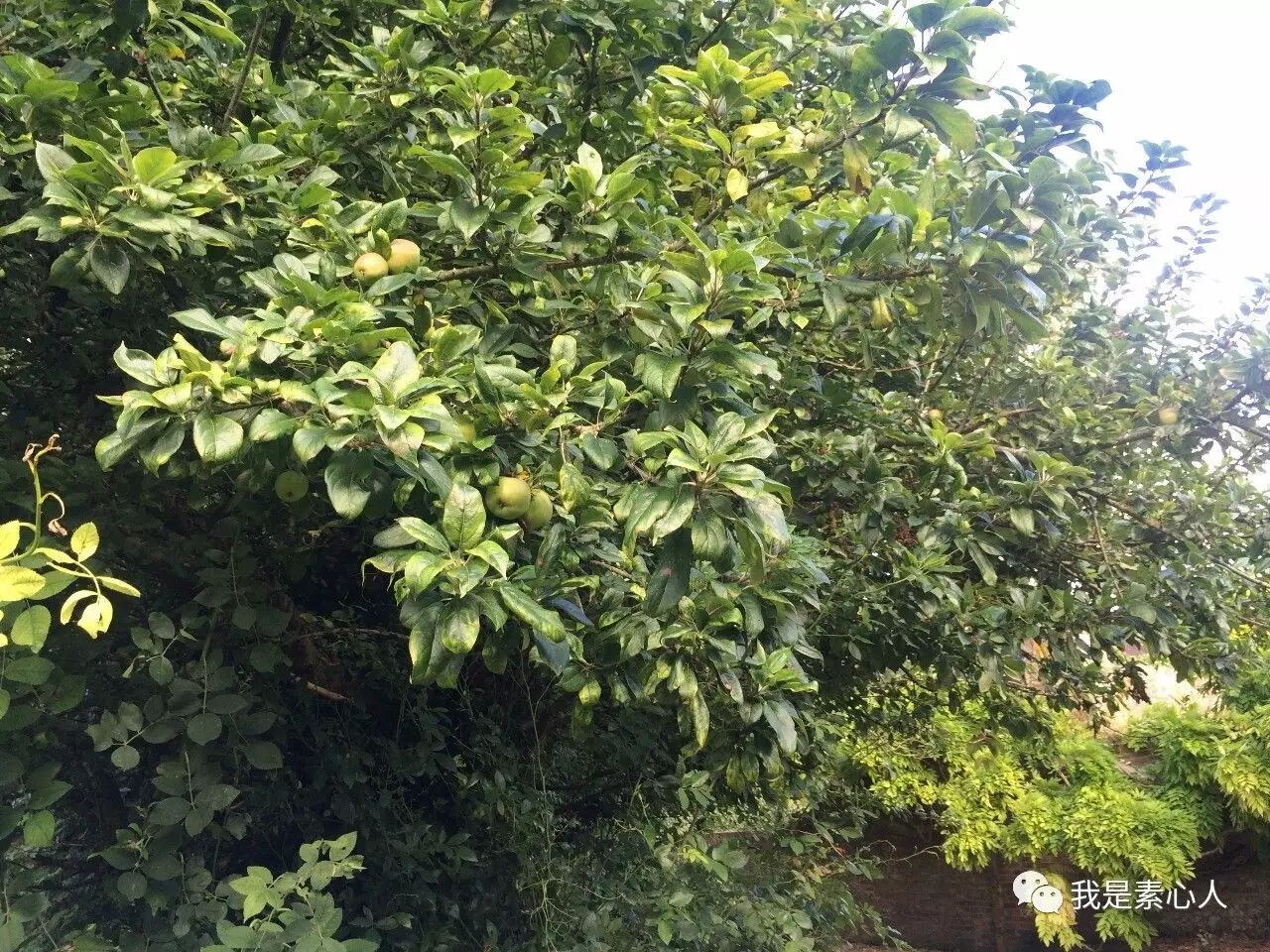 博物馆外的苹果树结满了果实,2016年9月