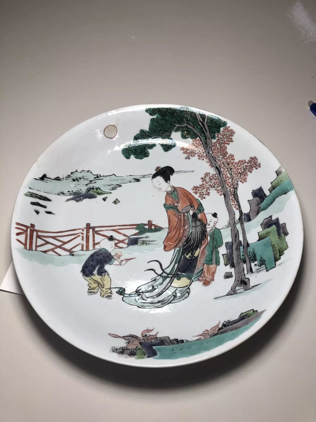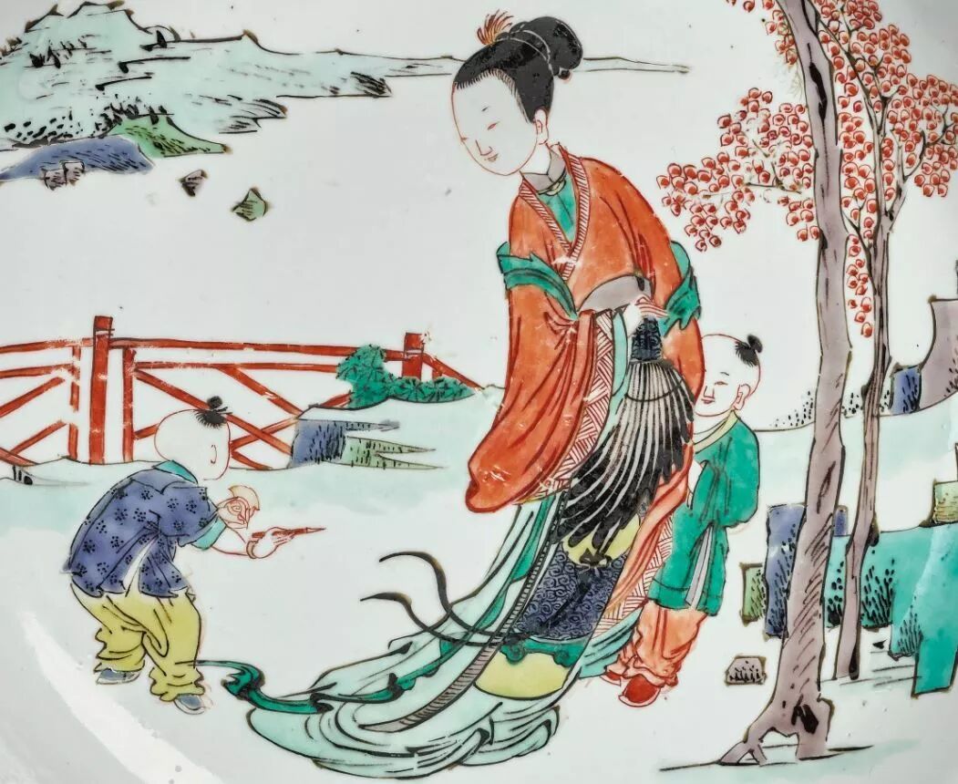 五彩仕女婴戏图盘