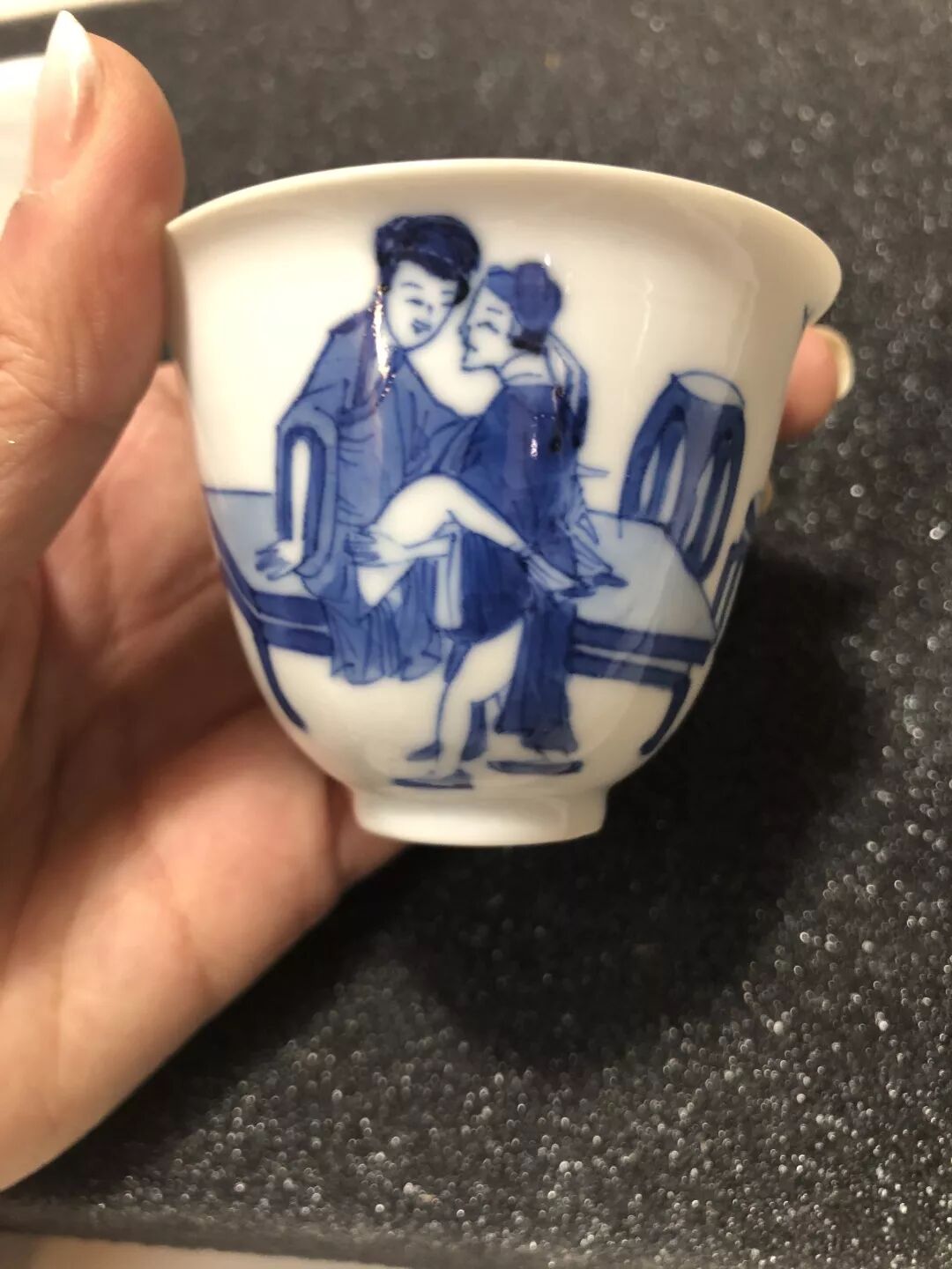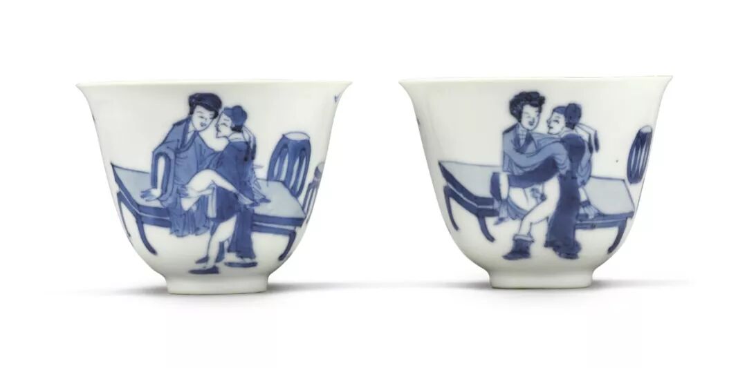 青花春宫图杯一对
