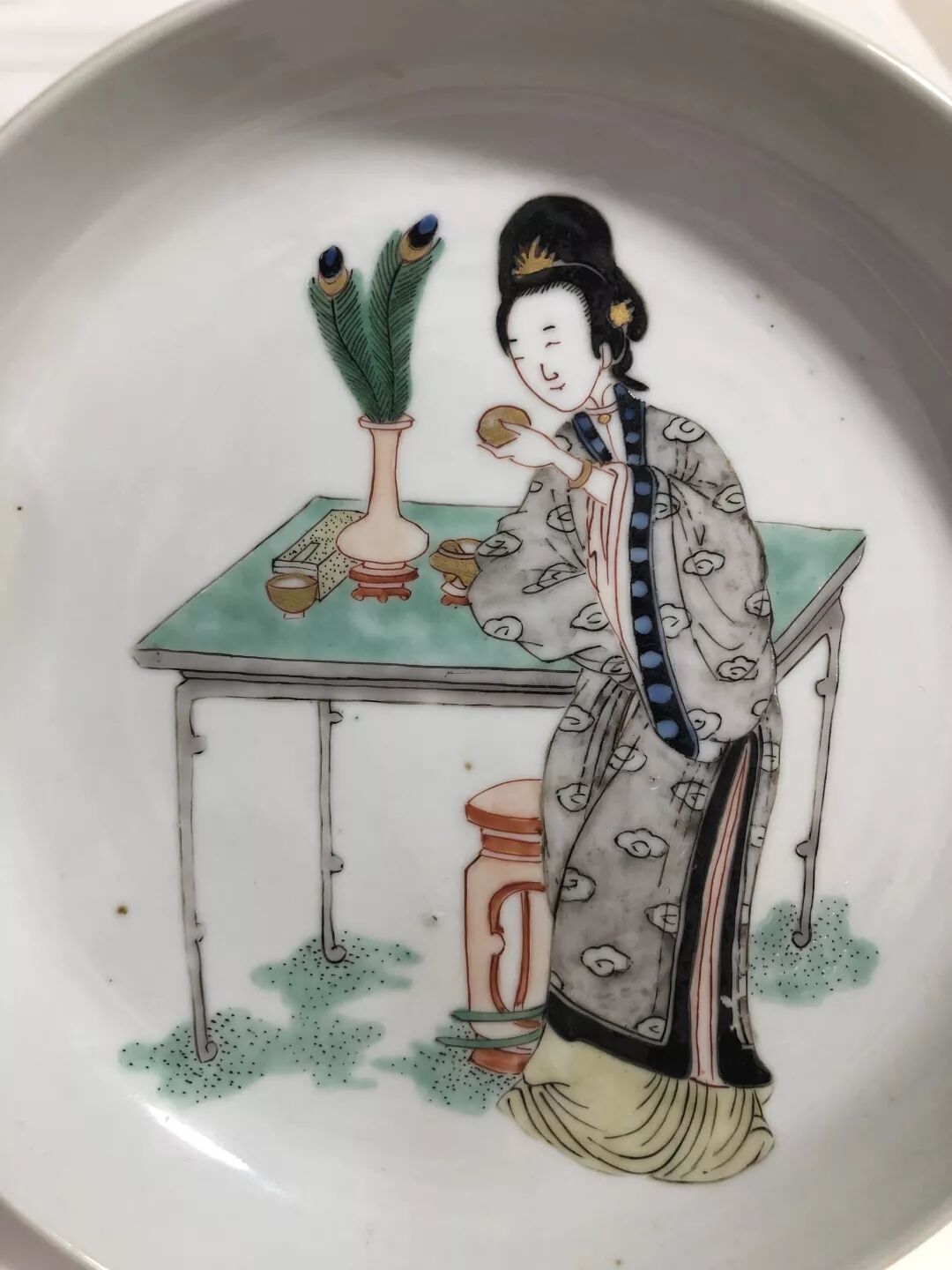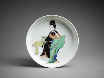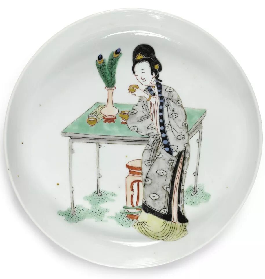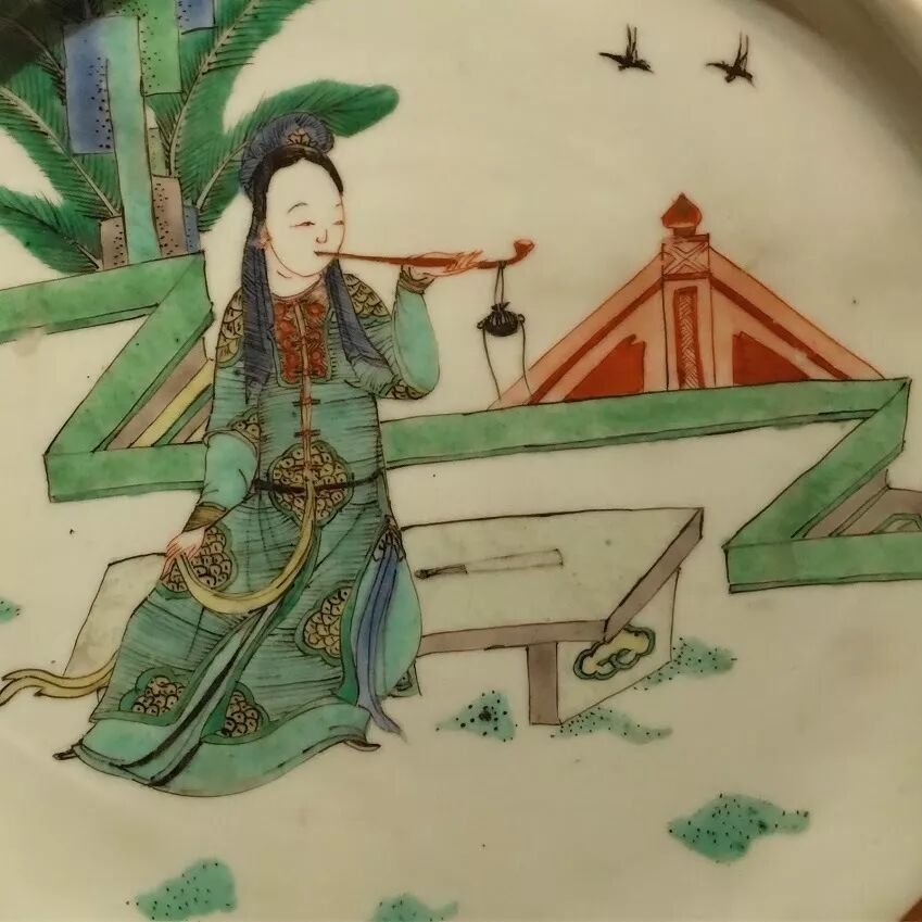 法国吉美博物馆康熙仕女小憩(抽烟)图盘