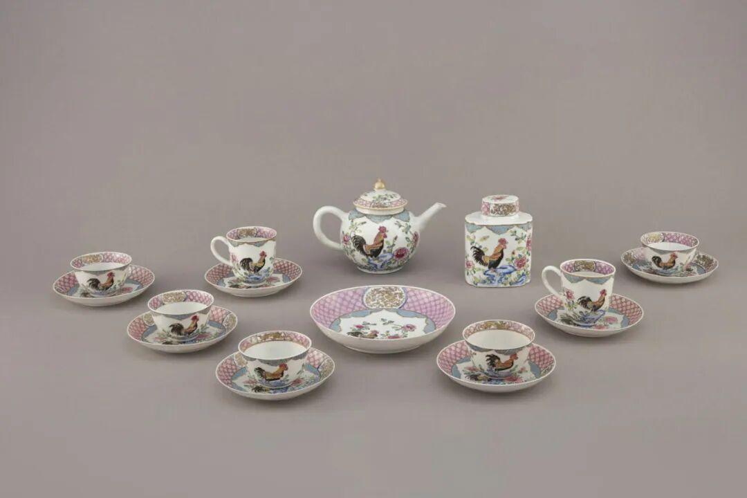 在十八世纪的法国宫廷与贵族生活中,当他们端起茶杯、高谈阔论之时,那些画着雄鸡昂扬的粉彩茶具,几乎是一种再自然不过的选择。鸡,昂首的姿态、充沛的生命力,与粉彩柔和丰富的色彩一起,恰到好处地落在了法国人的审美点上。