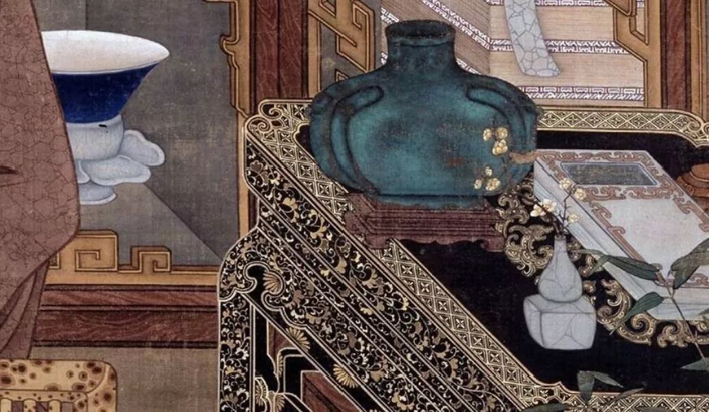 在雍正《十二美人图》中,其中一幅里就有扁壶器物的展示,看画