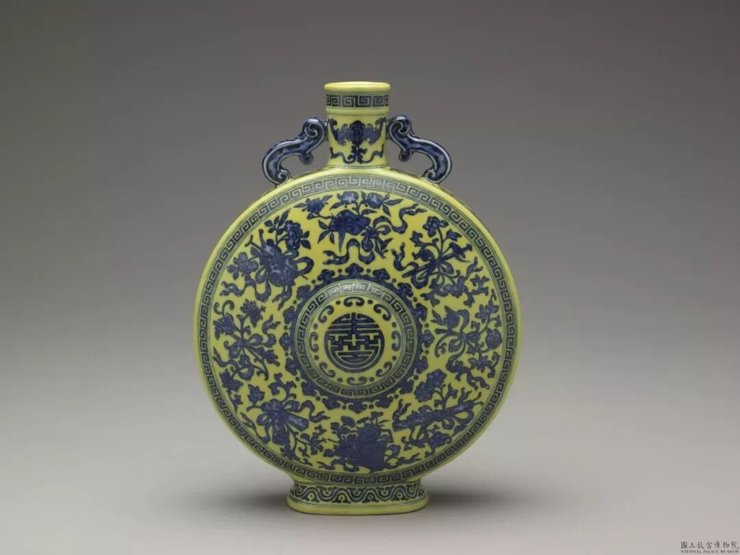 乾隆黄釉青花八仙祝寿扁壶,国立故宫博物院