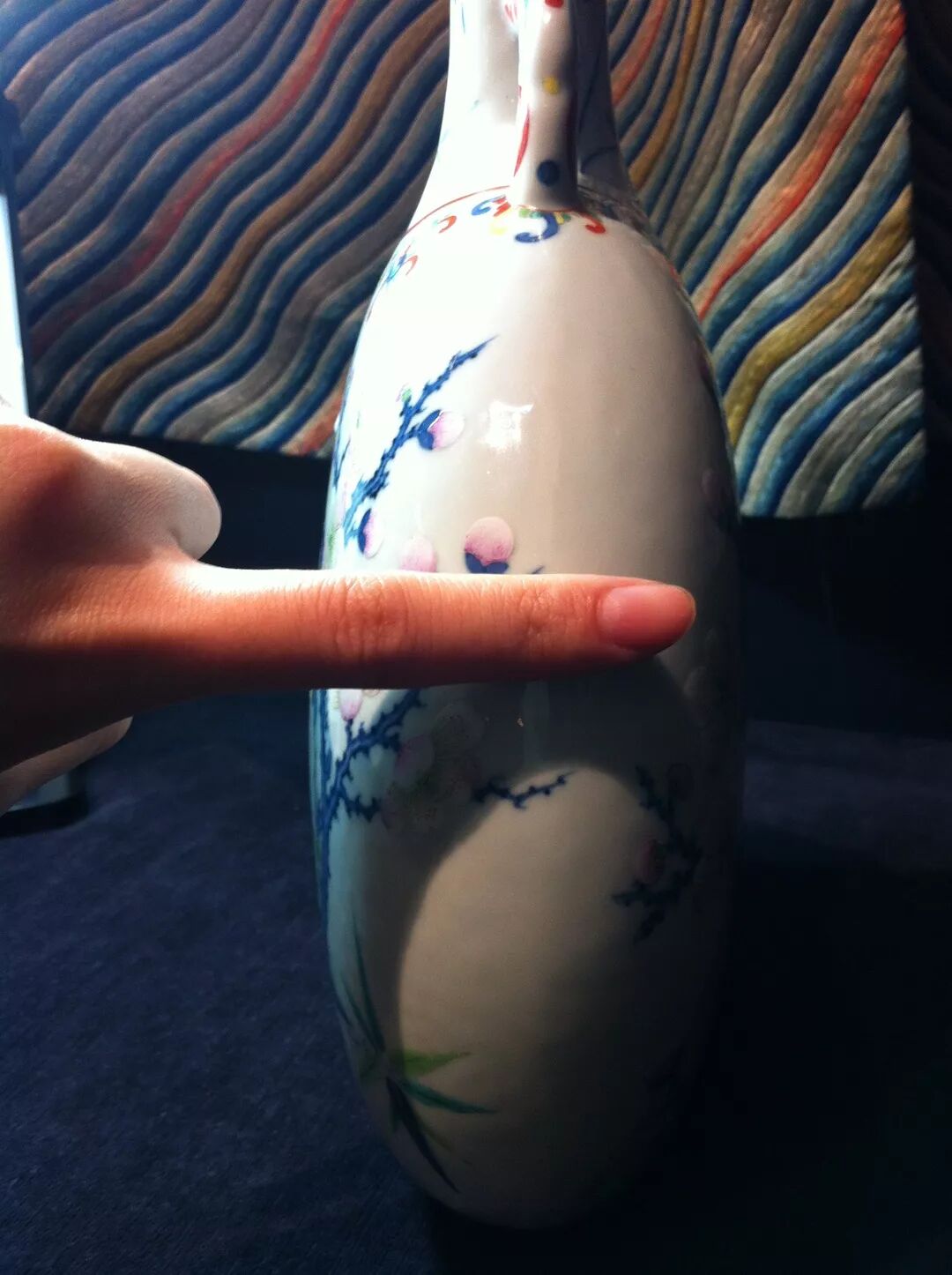 某个拍卖预展上,某件乾隆抱月瓶的侧面,不够圆润。