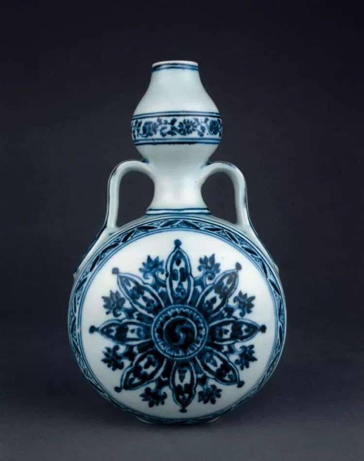 明永乐,青花葫芦形绶带双耳扁壶,大维德藏品。