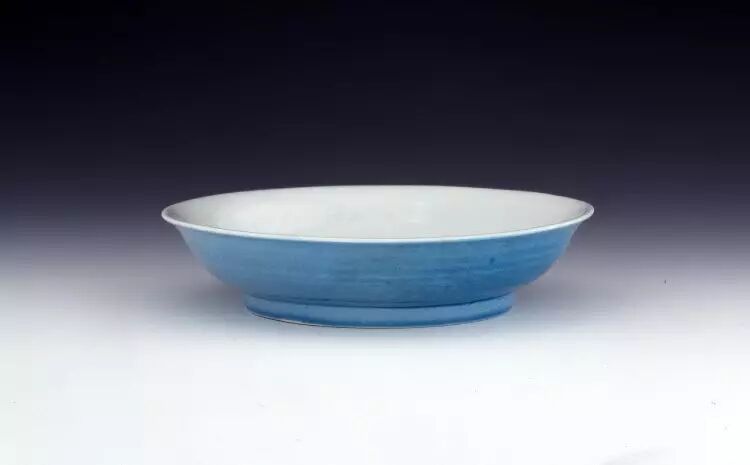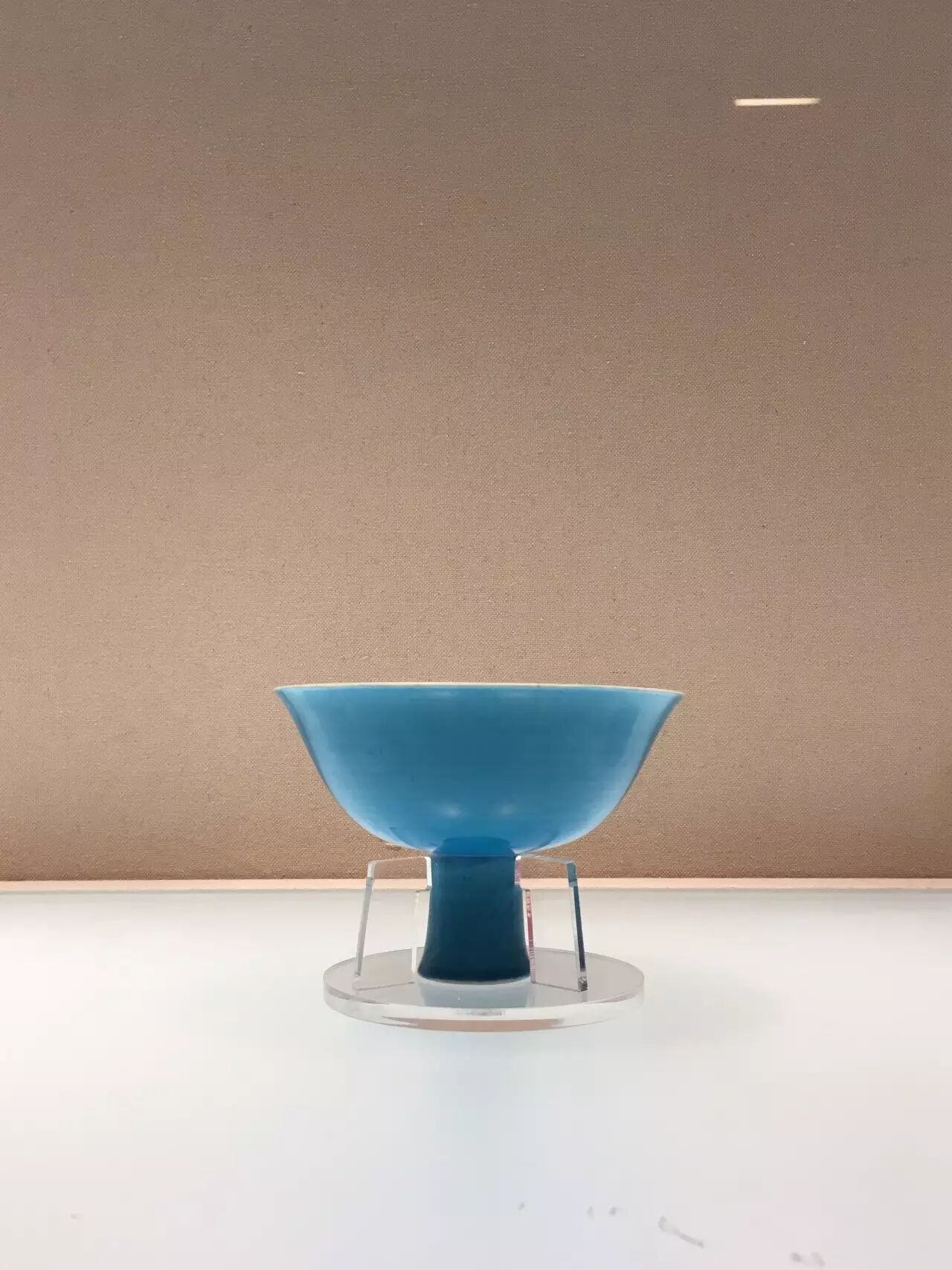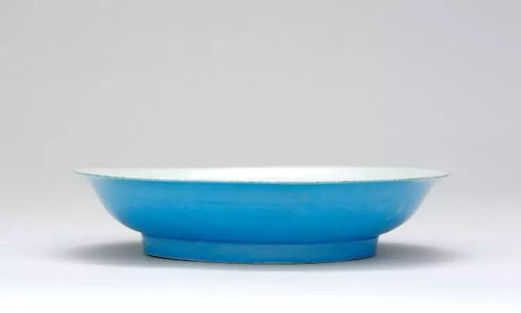 孔雀蓝也被称为孔雀绿(国外研究和博物馆文本中,这个颜色,统一翻译成Turquoise blue,意思是土耳其蓝,因为土耳其是其颜色来源绿松石的生产地)。在清代的时候,《南窑笔记》中记载,有‘法蓝,法翠二色’,‘法翠’又称为‘吉翠’,即我们今天所说的孔雀绿,孔雀蓝,它是一种以氧化铜为着色剂(着色剂就是釉的成分中有氧化铜)的中温颜色釉,颇似孔雀羽毛上的颜色。不知从何时起,孔雀绿取代了‘法翠’,成为中文系统中,对这种色调的统一名称。我喜欢的色调都偏蓝,而且这个小文着重点也是在蓝,所以用孔雀蓝这个名字。