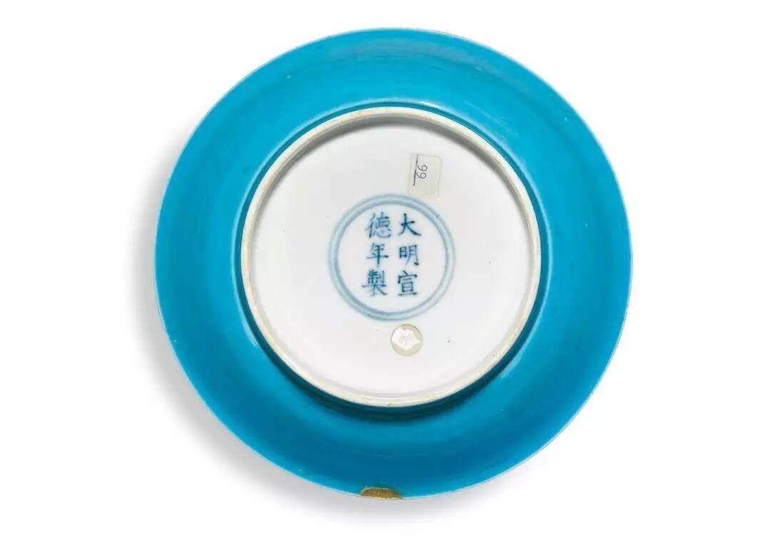 图3 大维德藏品,明宣德孔雀蓝釉盘
