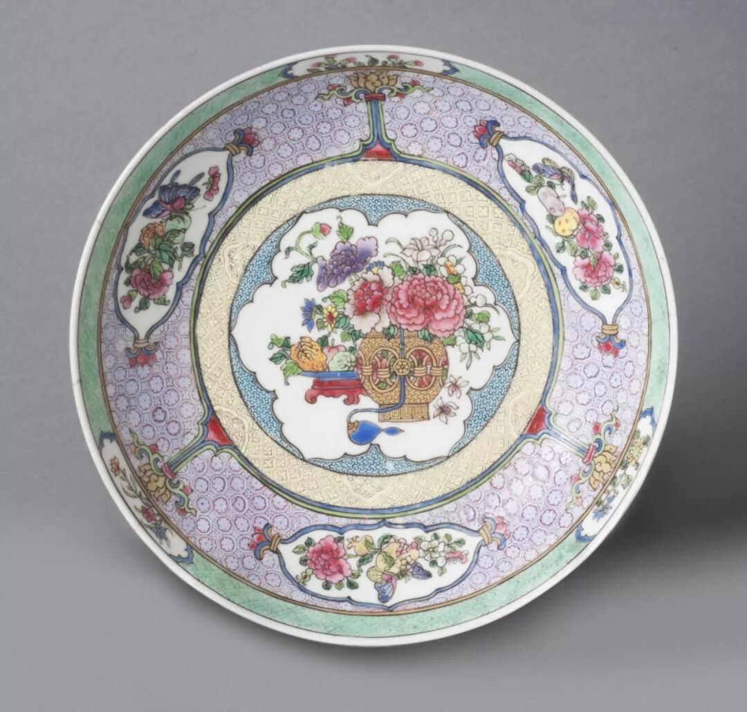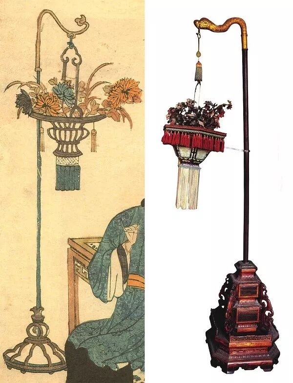 嘉庆间桃花坞版画花篮;养心殿东暖阁挑杆花篮。