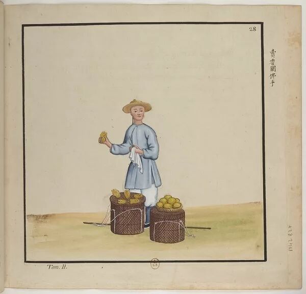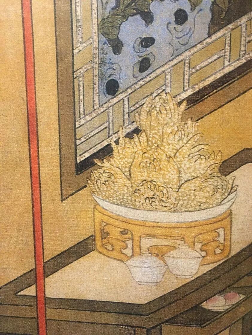 第一次注意到佛手柑是好多年前,还在读硕士期间,在SOAS图书馆里的某本关于清代宫廷生活的展览图录上看到《十二美人图》,图录印刷质量很好,细节更是放大了印刷,细节逼真的如同室内设计的杂志照片。(见图1)