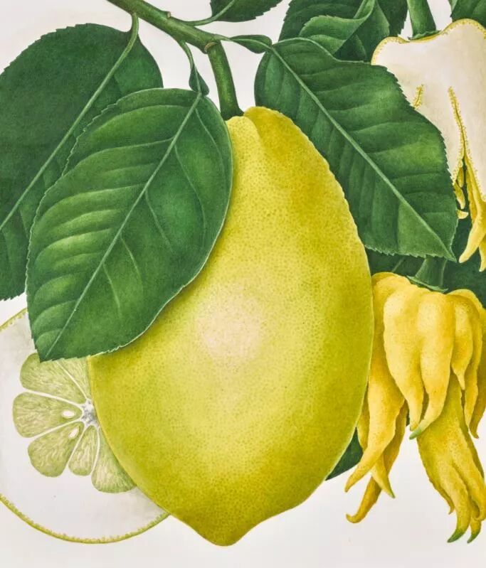据扬眉剑舞考证,大约也是在宋代,同属柑橘属的枸橼,即香橼,因其强烈的芳香,逐渐脱颖而出成为闻果的主力军。香橼卵球形,形如小瓜,柠檬黄色或淡绿色,果皮粗厚凹凸不平,但香气浓郁,甚至可以当做熏衣的材料之一。宋《证类本草》称其“香氛大胜柑橘之类,置衣笥中,则数日香不歇”,“人爱其香气”;明《长物志》说它“香气馥烈,吴人最尚以磁盆盛供”;清代《花镜》也称“惟香橼淸芬袭人,能为案头数月淸供”。直接鲜食不如橙柑,多是切片晒干、制药,或者制成蜜饯,如记载所提“取其瓤,拌以白糖,亦可作汤,除酒渇”,“瓤可作汤,皮可作糖片、糖丁”。香橼的主产地在闽浙岭南四川等,在宋代南剑州(今福建南平)一带所产的香橼已成为贡品。佛手柑就是香橼的一个变种,明清时期,与香橼一起成为文人骚客或者大家闺秀闺房的常用闻果。